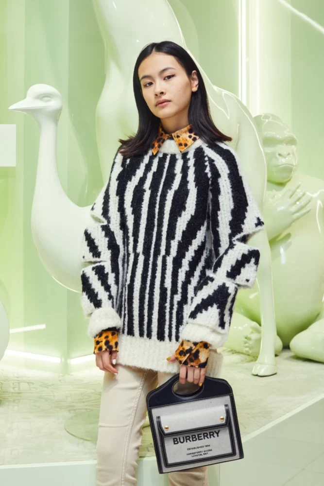 バーバリーのチーフ・クリエイティブ・オフィサーであるリカルド・ティッシと、ブランドの創業者トーマス・バーバリーがともに愛したアニマルのシンボリズムと力強さがテーマとなり、バーバリーのブランドカラーであるピスタチオに彩られた店内の随所に様々なアニマルが設置され、店頭ではその世界観が体験できるARも展開中。
