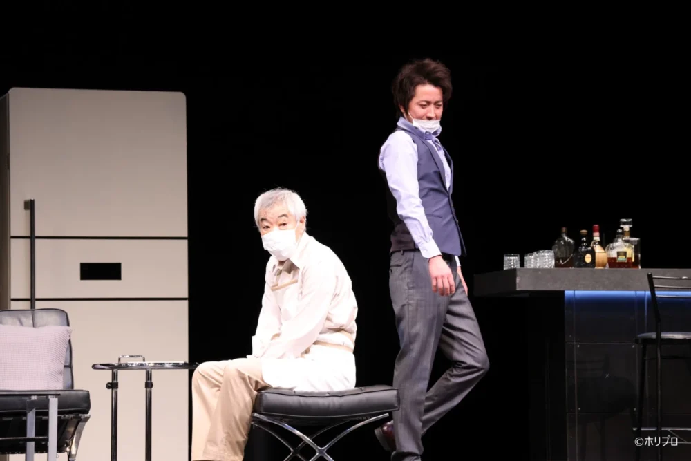 作品を多くの観客へ届ける為、稽古中から感染対策を徹底しており、舞台稽古に入ってからもギリギリまでマスク着用で稽古。楽屋や大道具小道具にはすべて抗菌処理を施し、楽屋内に菌を持ち込まないよう衣服・靴・マスクの取り替えなど厳密にルール化。もちろん主催者は劇場での対策も徹底し、検温・消毒、劇場内のこまめな消毒、ロビーでの密を避ける動線確保や換気の強化にも努め、予防対策を出演者が呼び掛ける動画を配信するなど様々な対策を講じている。