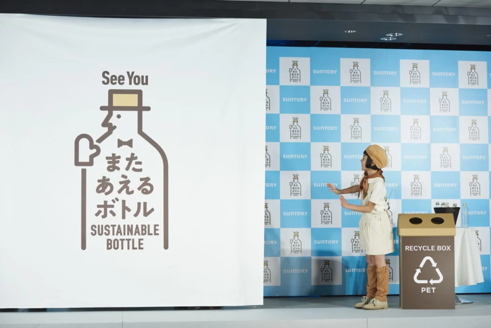 最後に、「ペットボトルは、何度も何度もペットボトルに生まれ変わることができます。新たな化石由来原料を使わない地球にやさしいまたあえるボトルを、皆さんよろしくお願いします」と2人合わせて仲良くアピール。ムギちゃんは佐藤さんに抱っこされ退場し、イベントは終了しました。