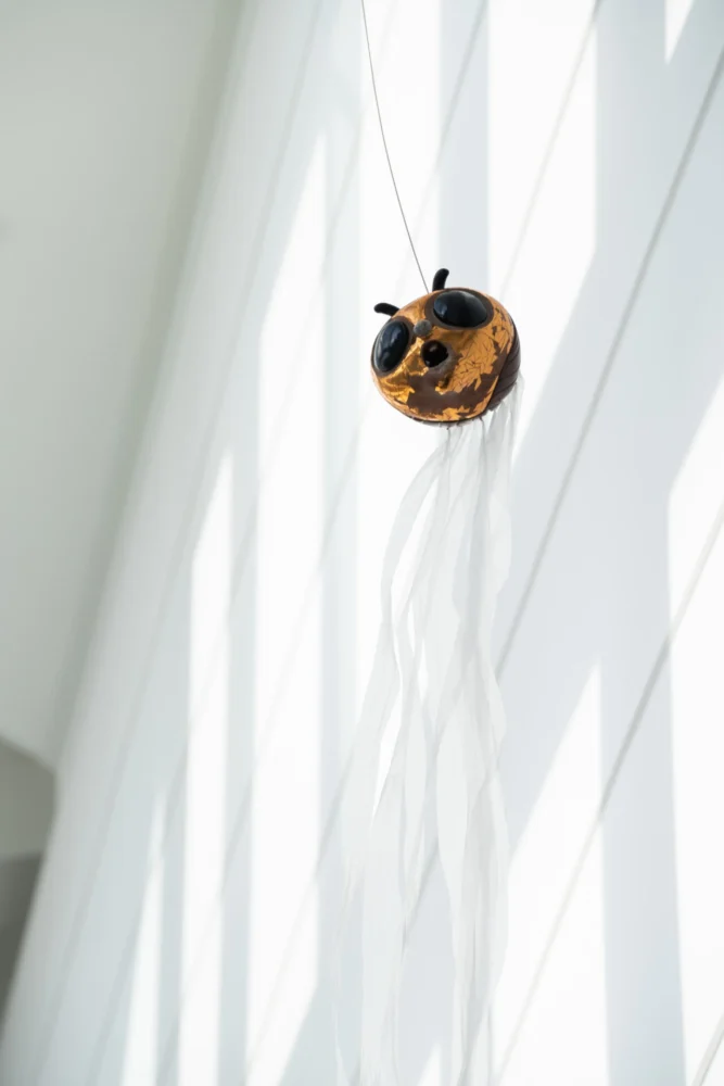 《振り子 ゴキンチの先生(PendulumGokinchi no Sensei)》 2022年 アルミ、ステンレスワイヤー、スタイロフォーム、アクリル塗料、スピードコントロールモーター ©鴻池朋子 ©楳図かずお/小学館 Photo: Ken Kato