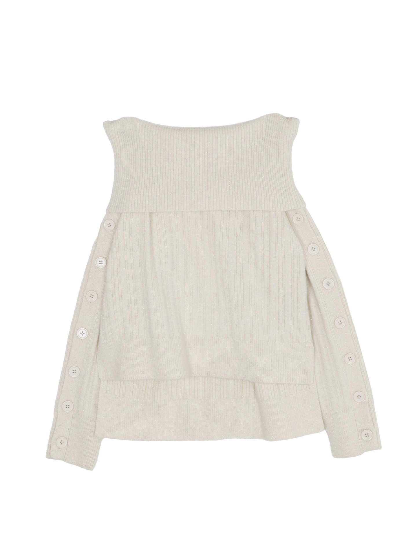 HOLIDAYシーズンにぴったりの華やかなニット。ラメ糸を織り交ぜた素材が、イルミネーションのようにきらめきを放ちます。さりげない肌見せデザインながら、前後差のあるシルエットで立体感を演出。スタイルアップが叶い、着ぶくれしにくいのも嬉しいポイントです。
