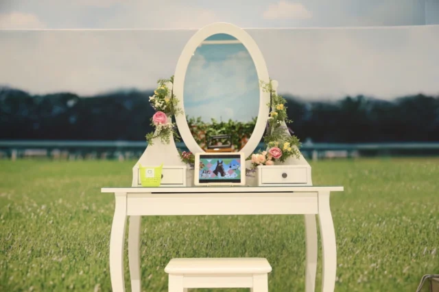 ウマミミ風アレンジやカラフルなウマのプリントのスカーフを使ったヘアアレンジなど、要望に合わせたヘアセットをプロが無料で実施。写真や動画を撮る前に、ヘアアレンジをお楽しみください。