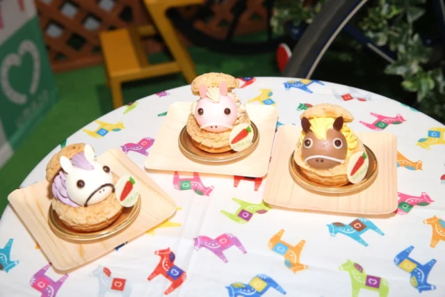 街頭やタイアップ店舗で配布されたチラシを持って、「UMAJO SPOT in Cat Street」を訪れると限定スイーツが当たる抽選に参加可能。アタリが出ると、おウマのシュークリーム(全3種のうち1種)、ハズレが出ると、ダーラナホースの絵柄がキュートな飴(全4種)をプレゼントいたします。