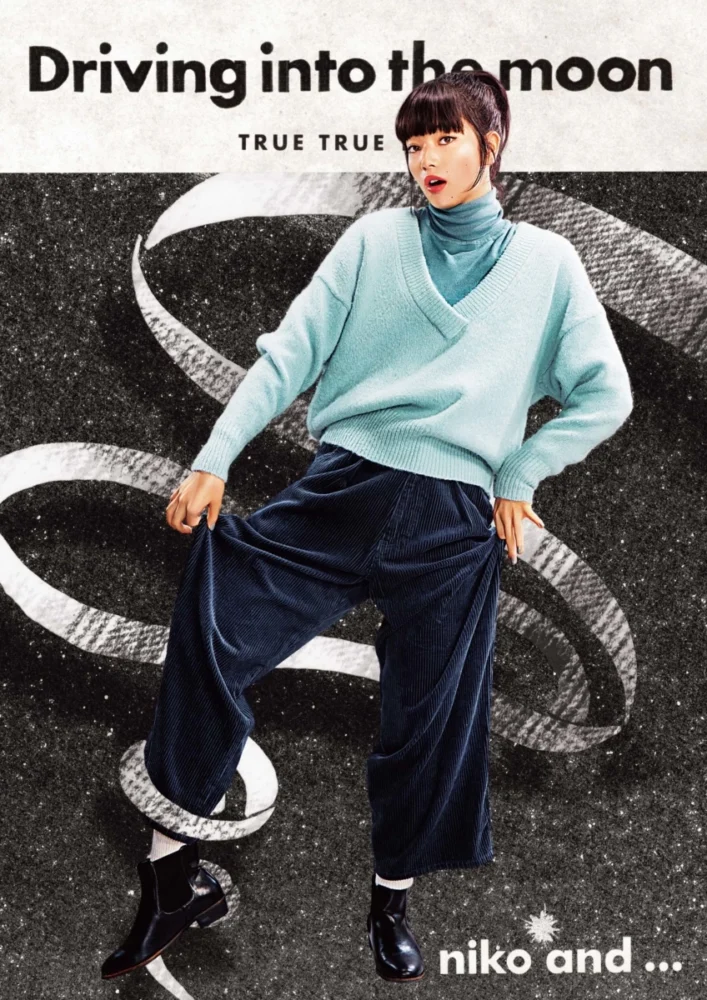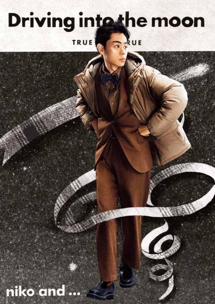 また、11月1日(金)からはクリスマスシーズンに合わせた特別ヴィジュアルの展開もスタート。こちらは“クリスマスの灯を打ち上げる。宇宙の彼方でメリークリスマス!星々を捕まえてツリーを飾り、光を集めてラッピング。何万光年先まで今目の前に広がるクリスマスを届けに出発です。”というコンセプトのもと、冬ヴィジュアルとは一味違った、ユニークな視点でクリスマスを表現しています。こちらのヴィジュアルに使用された宇宙船のセットは、niko and … の店舗がある二子玉川ライズのクリスマスツリー&イルミネーション企画“ELECTRIC MOON Xmas”とも連動しており、11月2日(土)の点灯式から12月25日(水)まで展示されます。ぜひ二子玉川ライズにご来場ください。