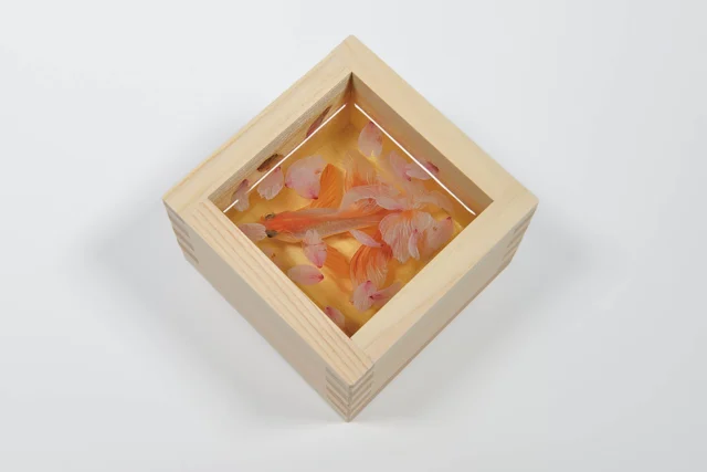 本展では、愛しい金魚を四季で表現する展示をはじめ、初期の作品を含んんだ代表作百余点により、深堀隆介の創作世界をご紹介いたします。