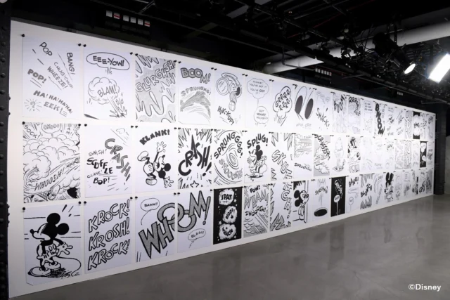 1928年に制作された、キャラクターの動きに音楽が同期した世界初の短編トーキー・アニメーション。ミッキーマウスのスクリーンデビュー作であり、現在に至るディズニーのクリエイションの原点である本作を追体験するような展示演出は、ミッキーマウスの歩みをともにたどる本展の船出にふさわしいものです。