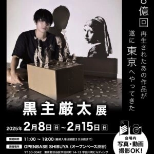 ダンボール影アート®で国内外から注目を集めるアーティスト・黒主厳太による初の個展を、2025年2月8日(日)から2月15日(日)まで東京・渋谷OPENBASE SHIBUYAて開催します。 本展の会場は暗闇に包まれ、作品